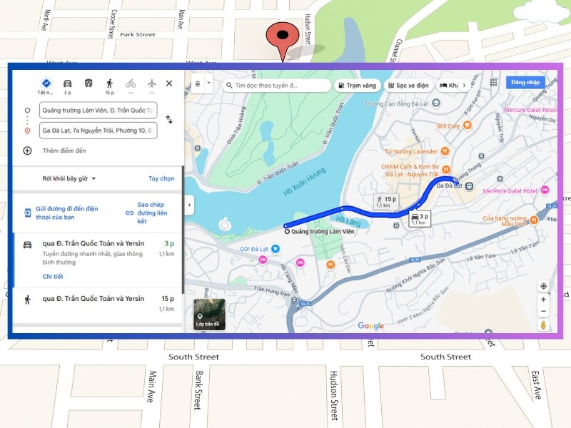 Ga Đà Lạt nằm cách trung tâm thành phố chỉ khoảng gần 2km, là điểm đến dễ dàng cho mọi du khách. Từ quảng trường Lâm Viên, bạn có thể lựa chọn các phương tiện như xe máy, taxi, hoặc xe đạp để di chuyển. Hãy đi theo đường Trần Quốc Toản, băng qua hồ Xuân Hương thơ mộng, sau đó rẽ vào đường Yersin, và bạn sẽ đến ngay nhà ga với nét kiến trúc Đông Dương cổ kính, đầy ấn tượng.