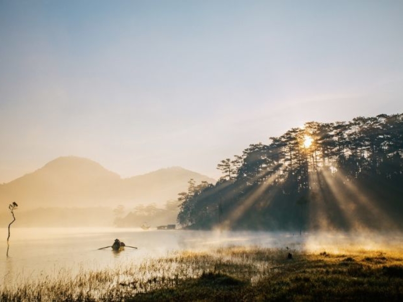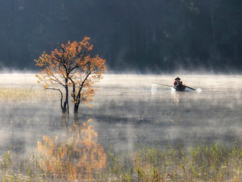 - Buổi sáng thức dậy, khung cảnh sương mờ bao phủ mặt hồ cùng không khí se lạnh sẽ mang đến cho bạn một cảm giác bình yên khó tả.
