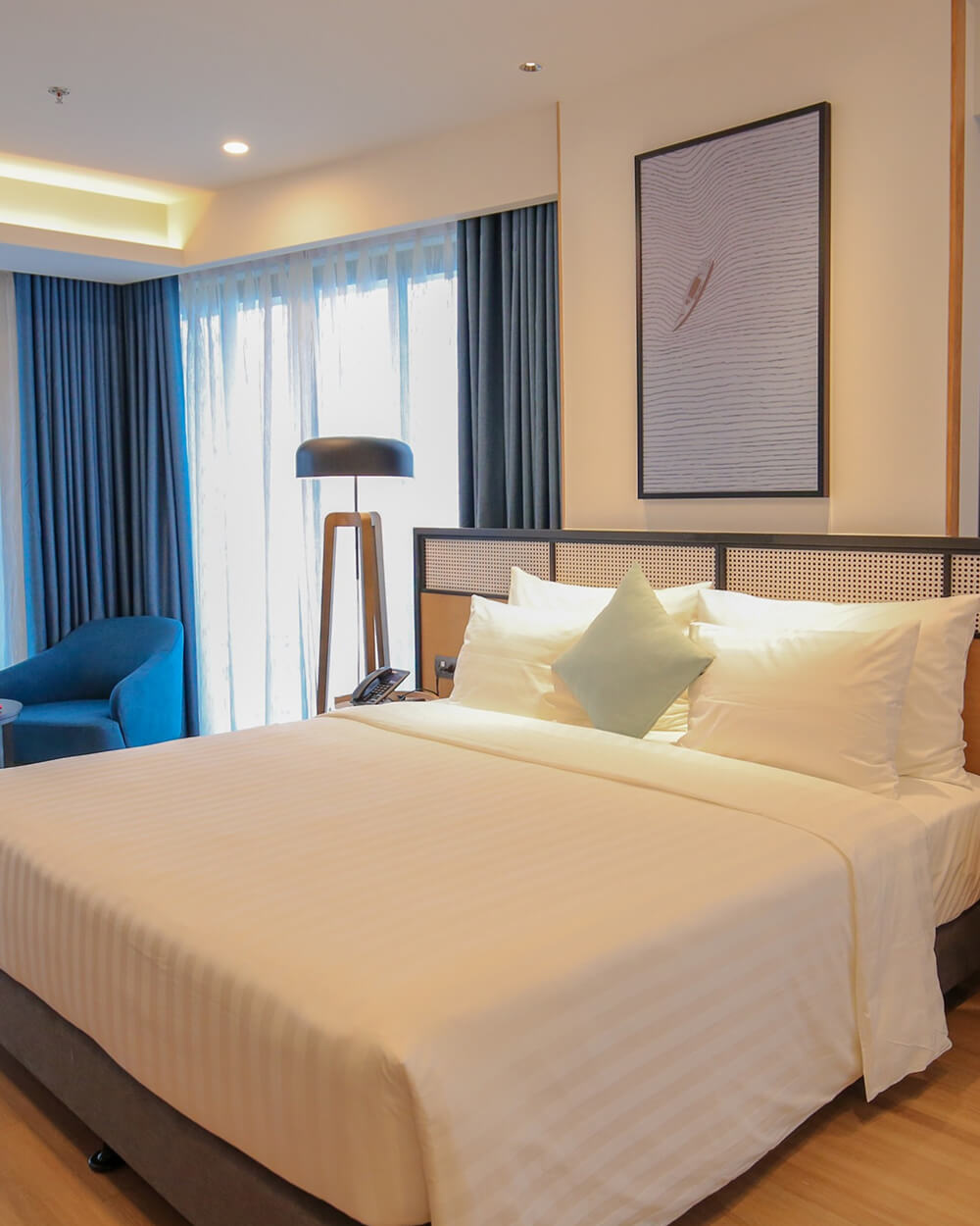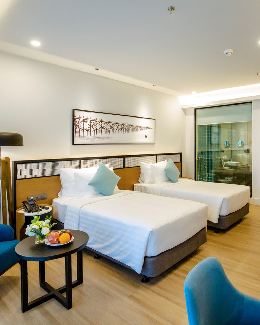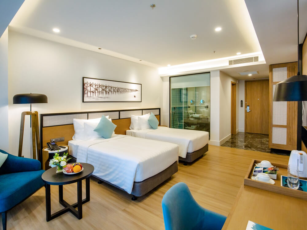 Tông màu xám – trắng, xanh – nâu của nội ngoại thất vô cùng hài hòa và mát mắt. Các thiết bị và vật dụng trong phòng nghỉ luôn đáp ứng đầy đủ tất cả các nhu cầu của du khách, đảm bảo cho một kỳ nghỉ thoải mái và thư thái nhất.